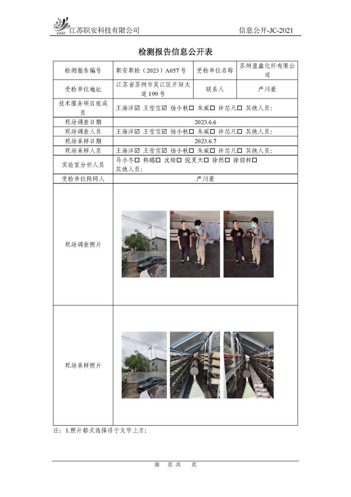 檢測報告公示