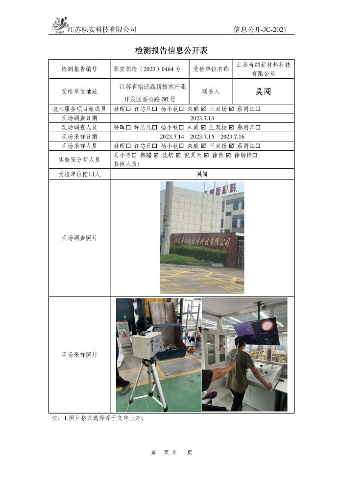 檢測報告公示