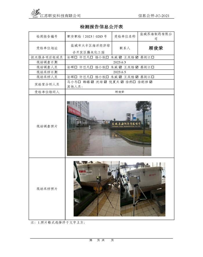 檢測報告公示