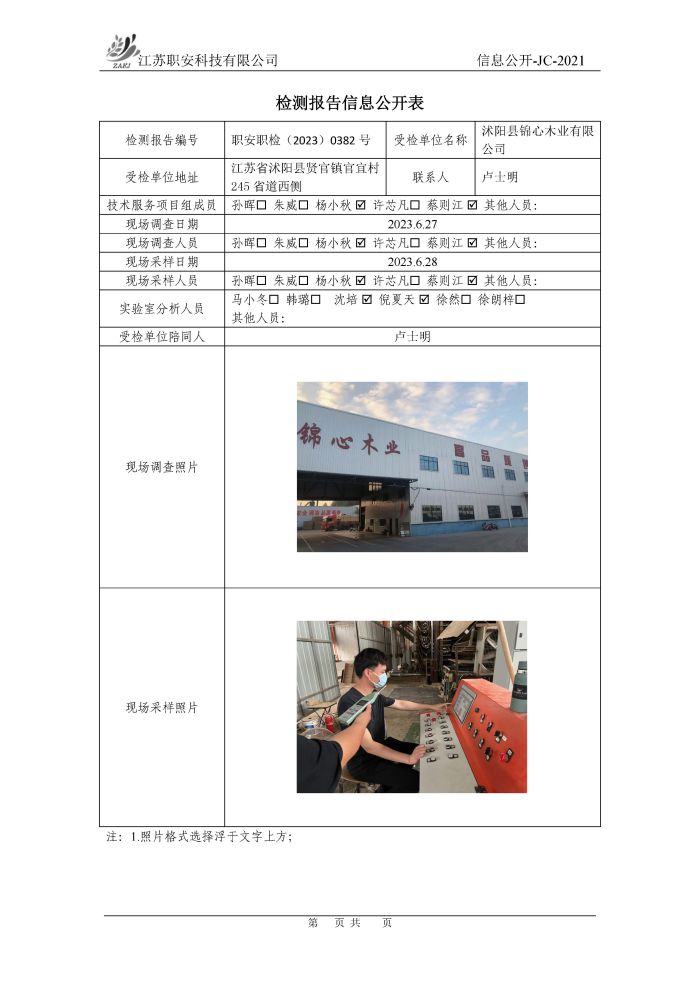檢測報告公示