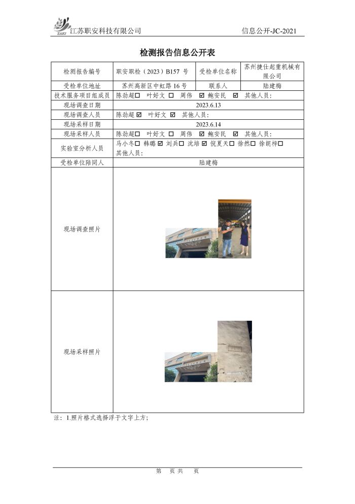 檢測報告公示