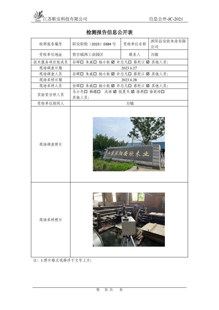 檢測報告公示