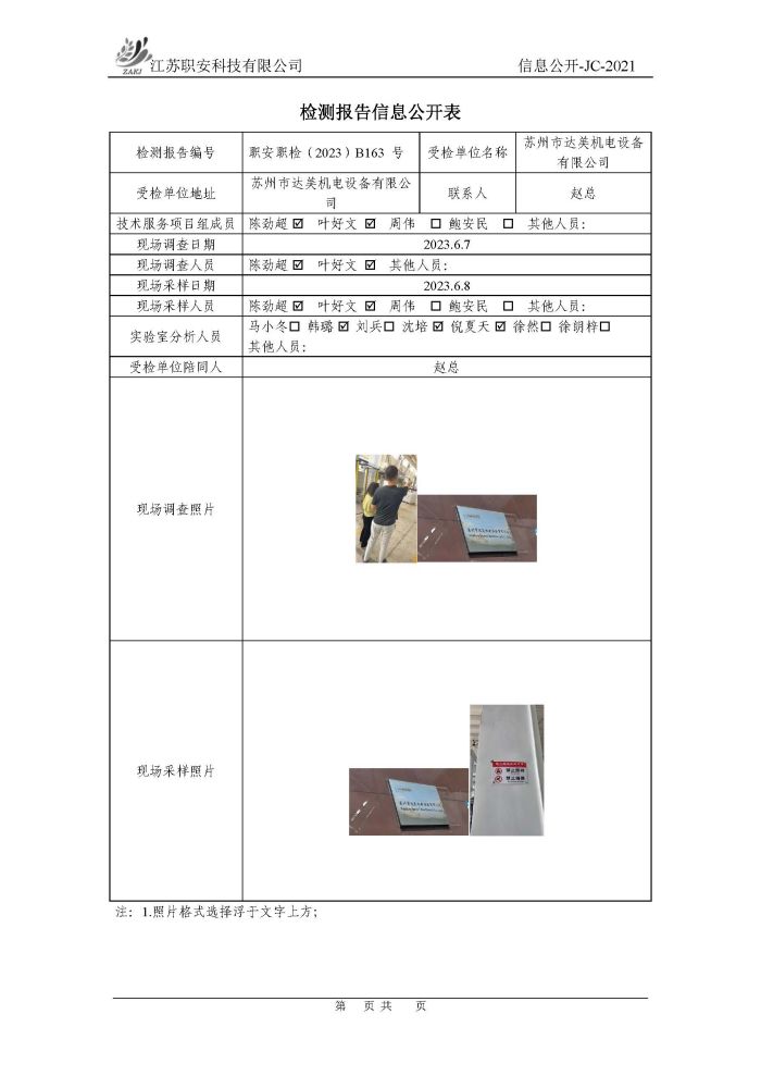 檢測報告公示