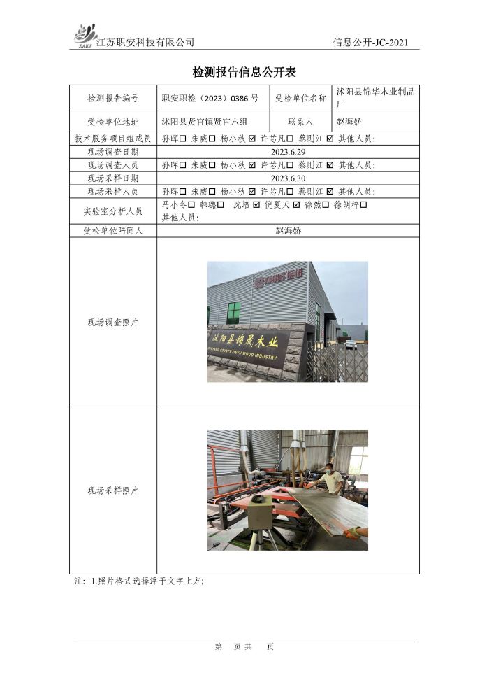 檢測報告公示