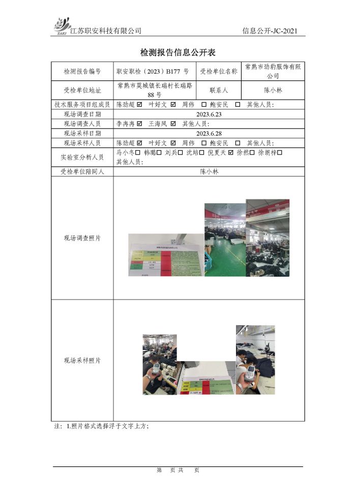 檢測報告公示
