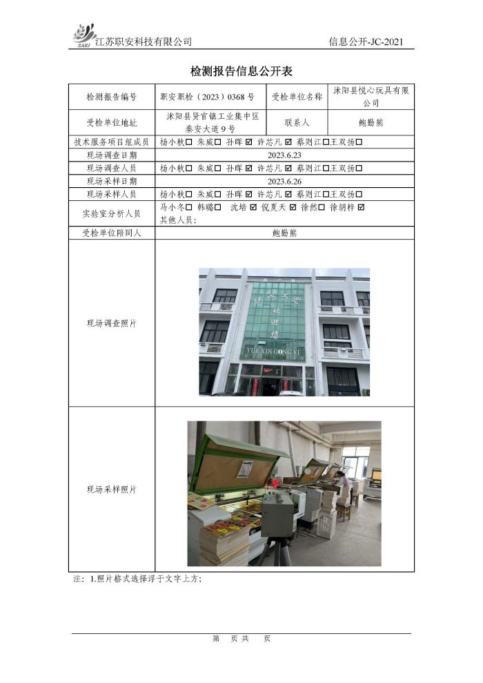 檢測報告公示