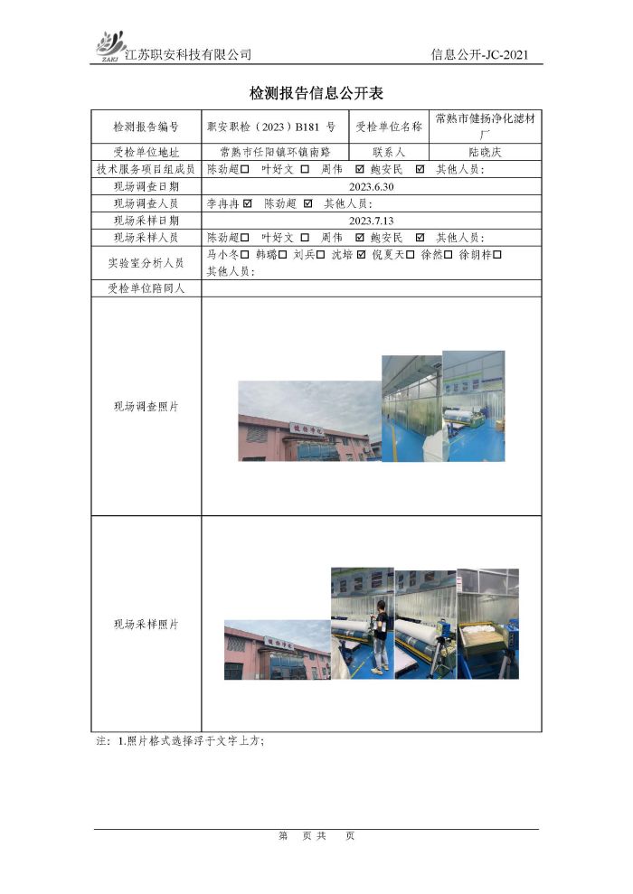 檢測報告公示