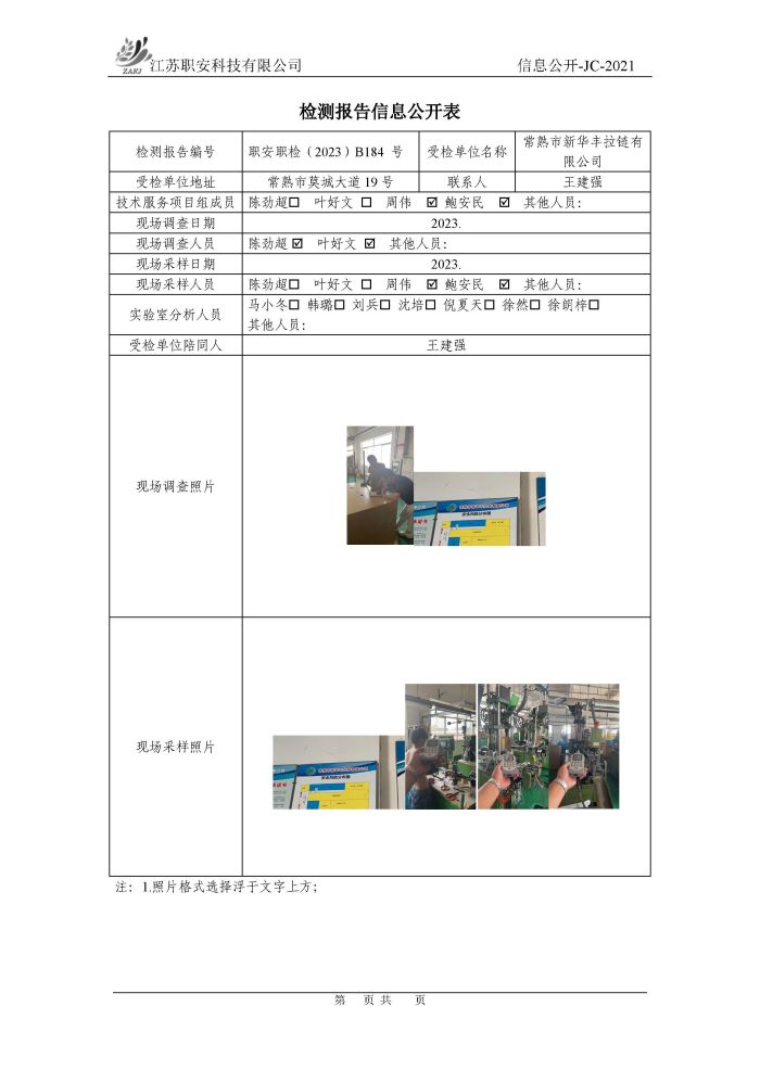 檢測報告公示