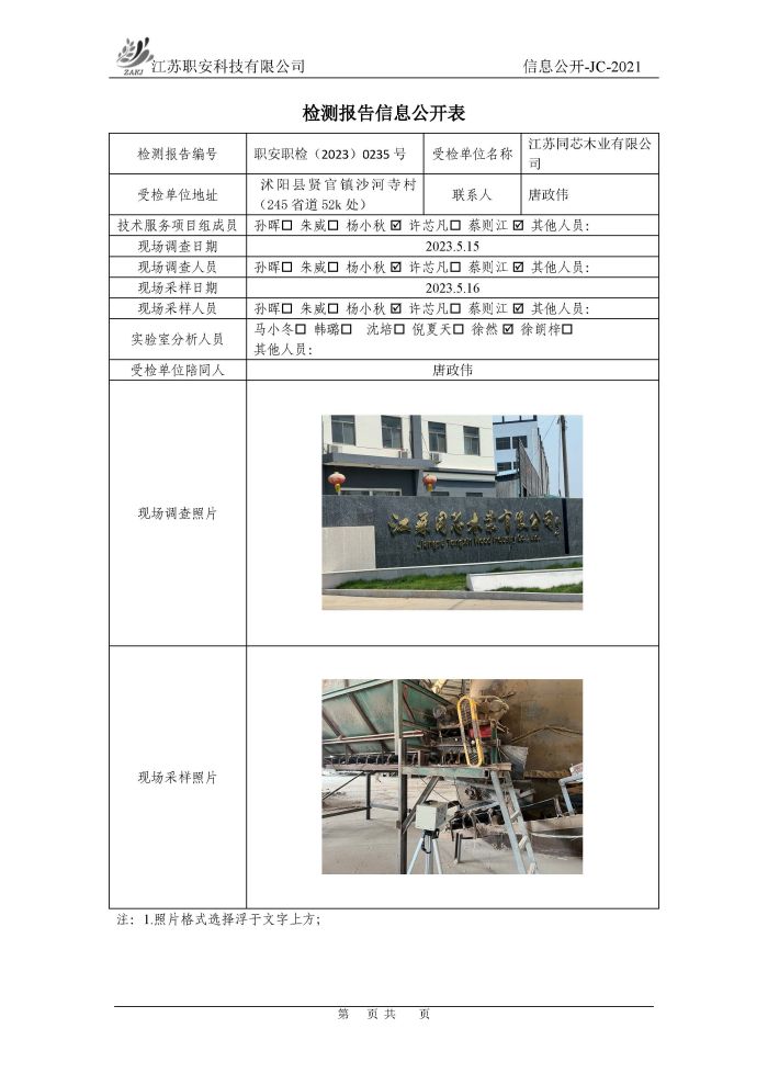 檢測報告公示