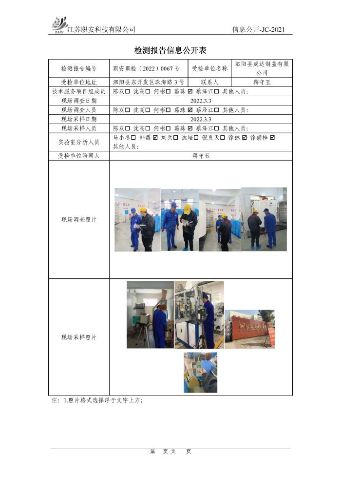 檢測報告公示