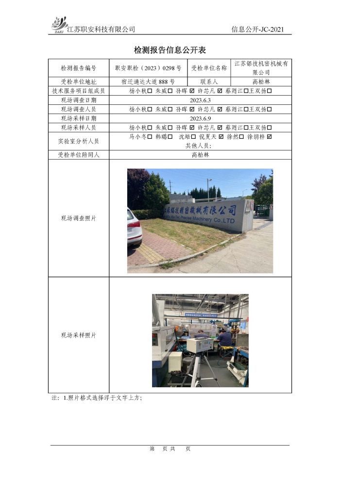 檢測報告公示