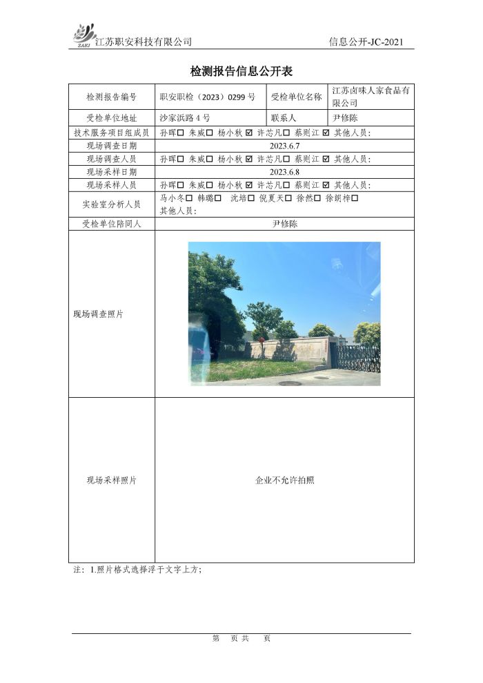 檢測報告公示