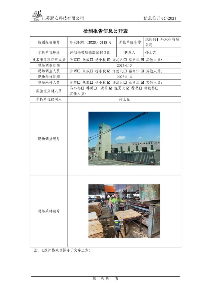 檢測報告公示