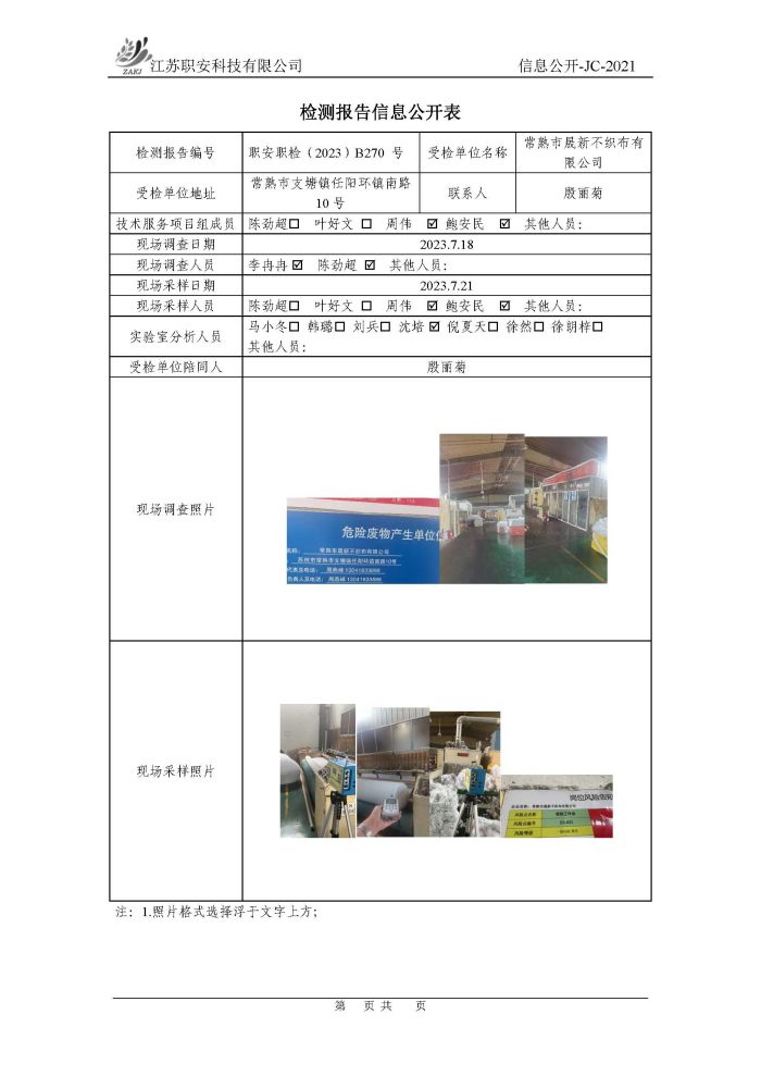 檢測報告公示