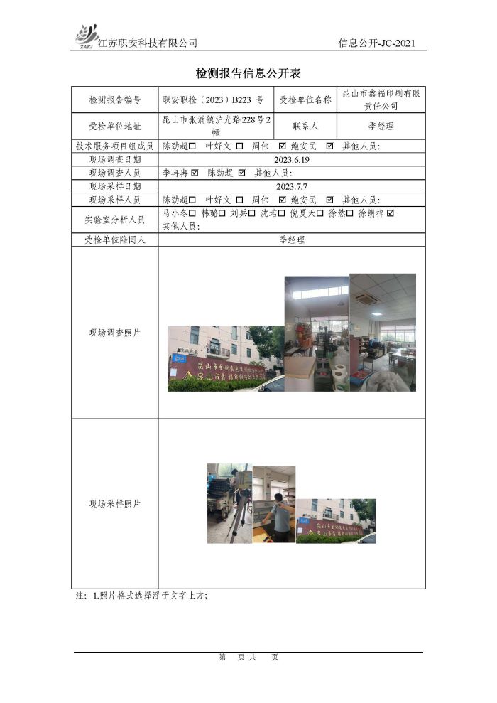 檢測報告公示