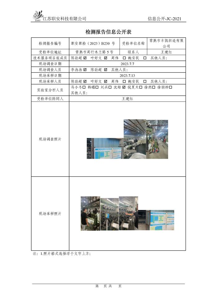檢測報告公示