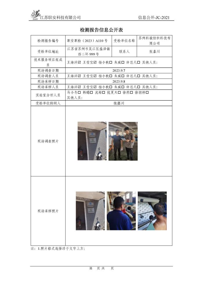 檢測報告公示
