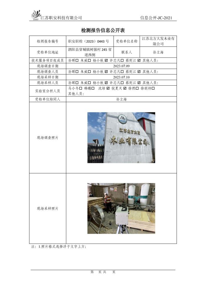 檢測報告公示