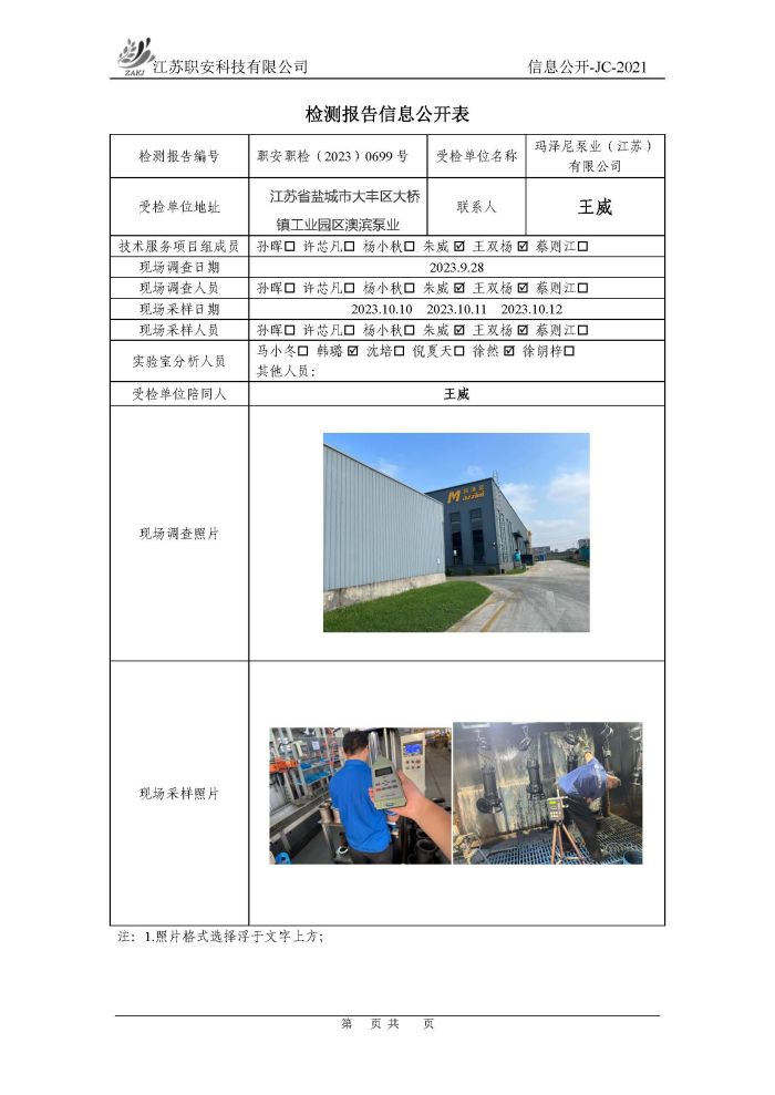 檢測報告公示