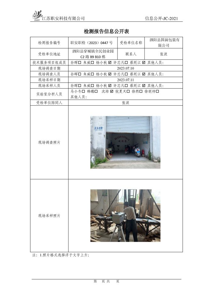 檢測報告公示
