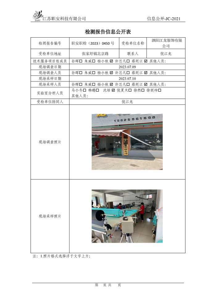 檢測報告公示