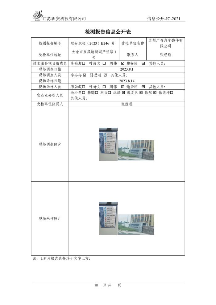 檢測報告公示