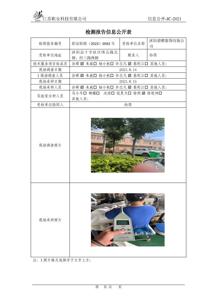 檢測報告公示