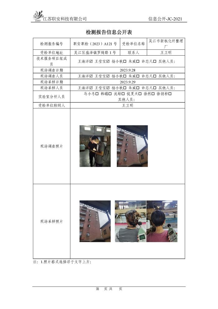 檢測報告公示