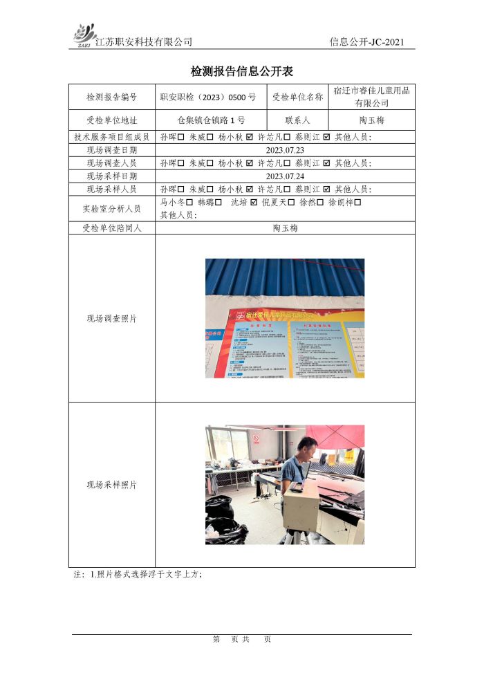 檢測報告公示