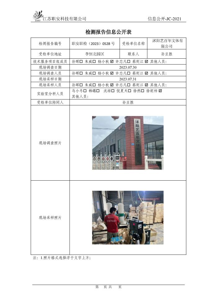 檢測報告公示