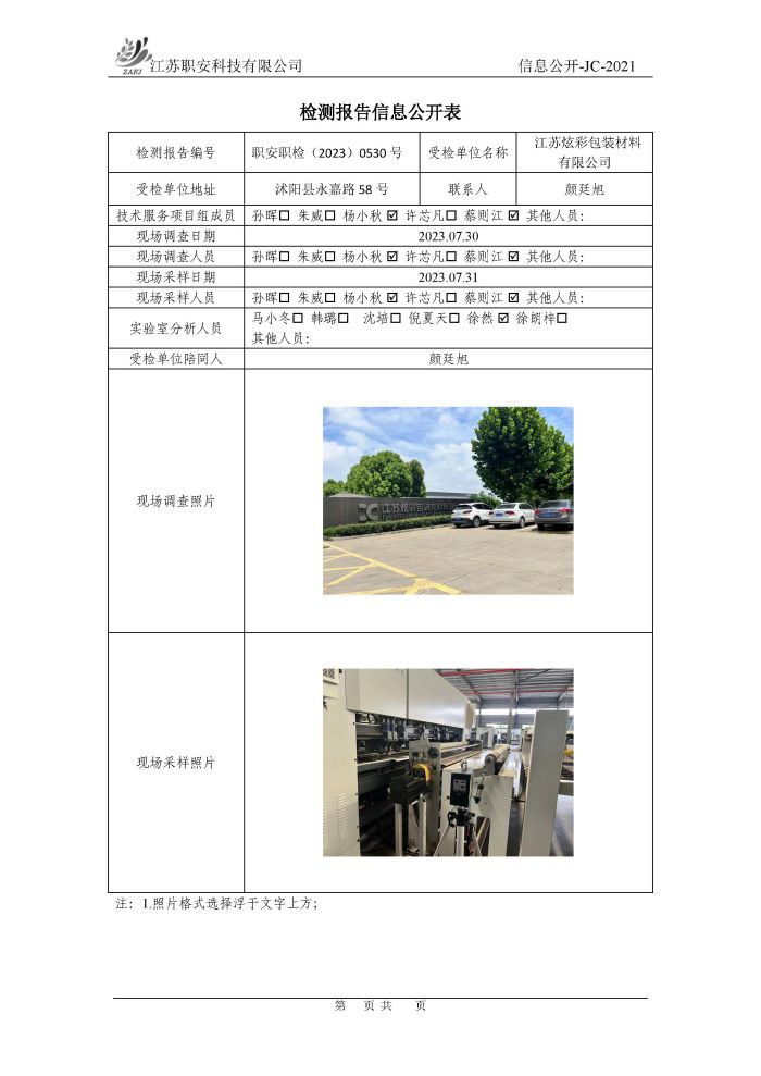 檢測報告公示