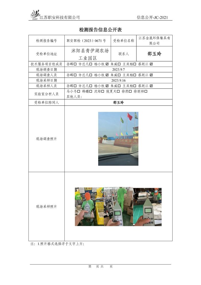檢測報告公示