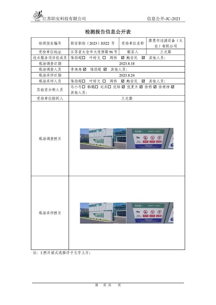 檢測報告公示