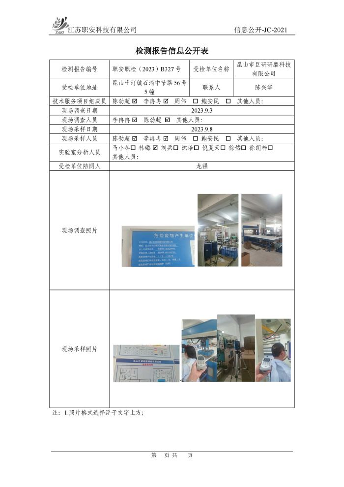 檢測報告公示