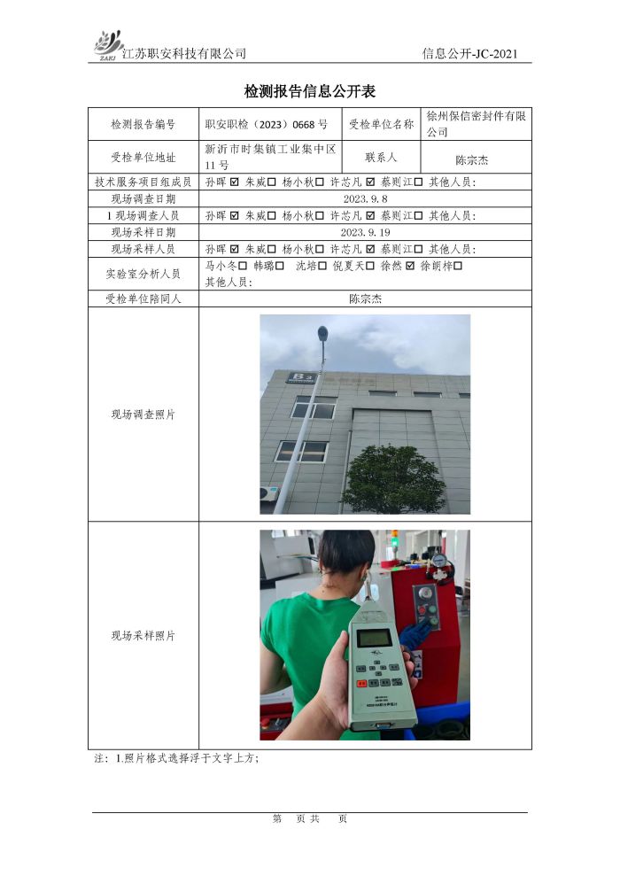 檢測報告公示