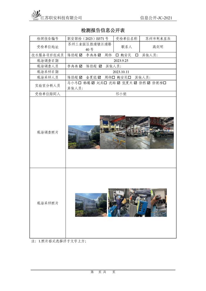 檢測報告公示