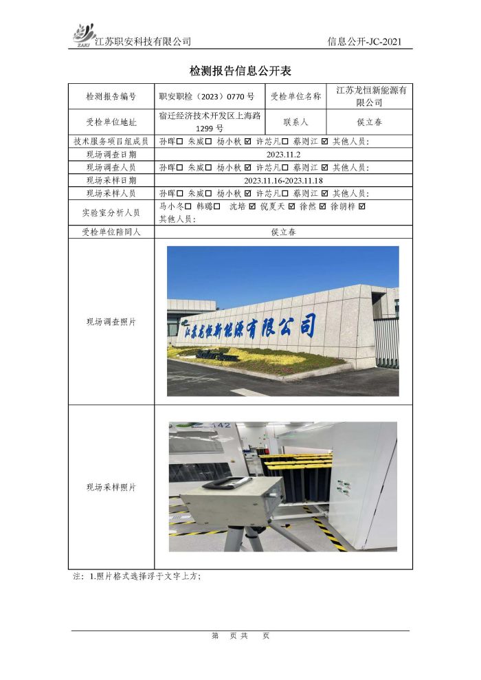 檢測報告公示