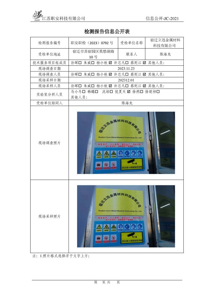 檢測報告公示