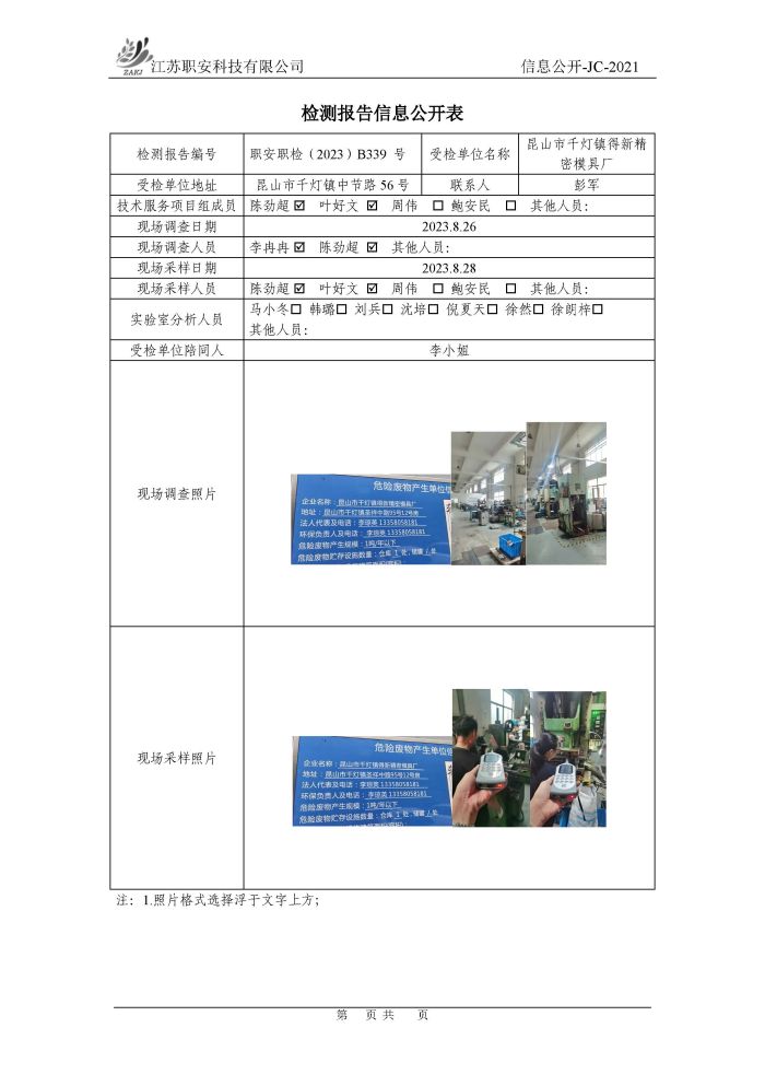 檢測報告公示