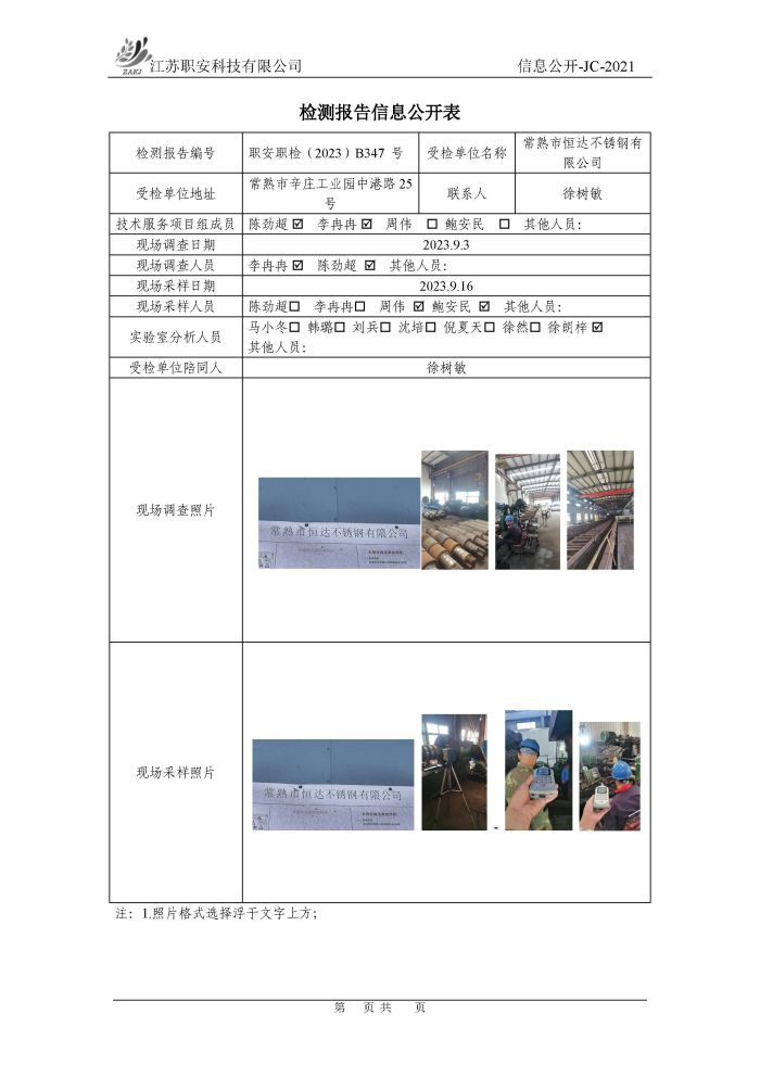 檢測報告公示
