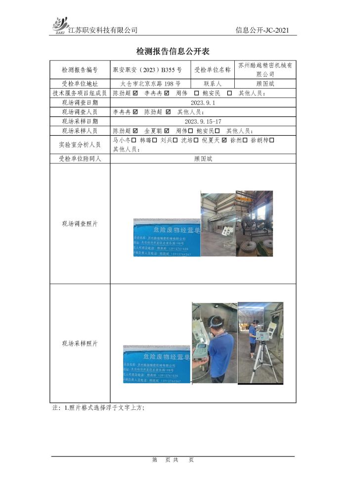 檢測報告公示