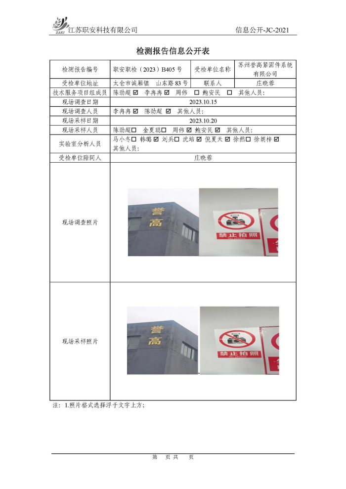 檢測報告公示