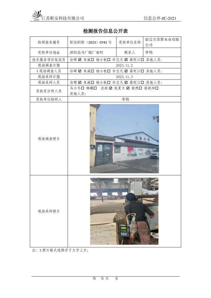檢測報告公示