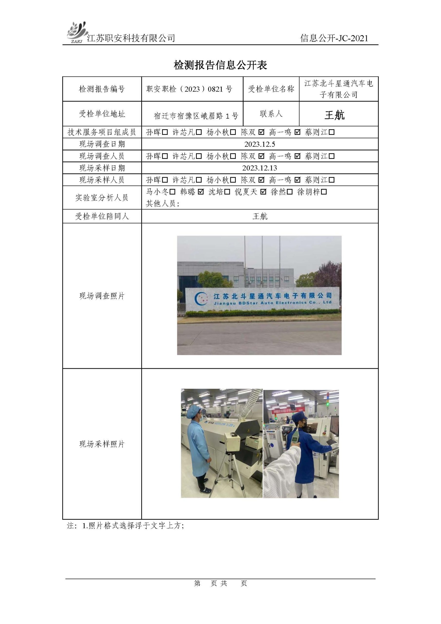 檢測報告公示