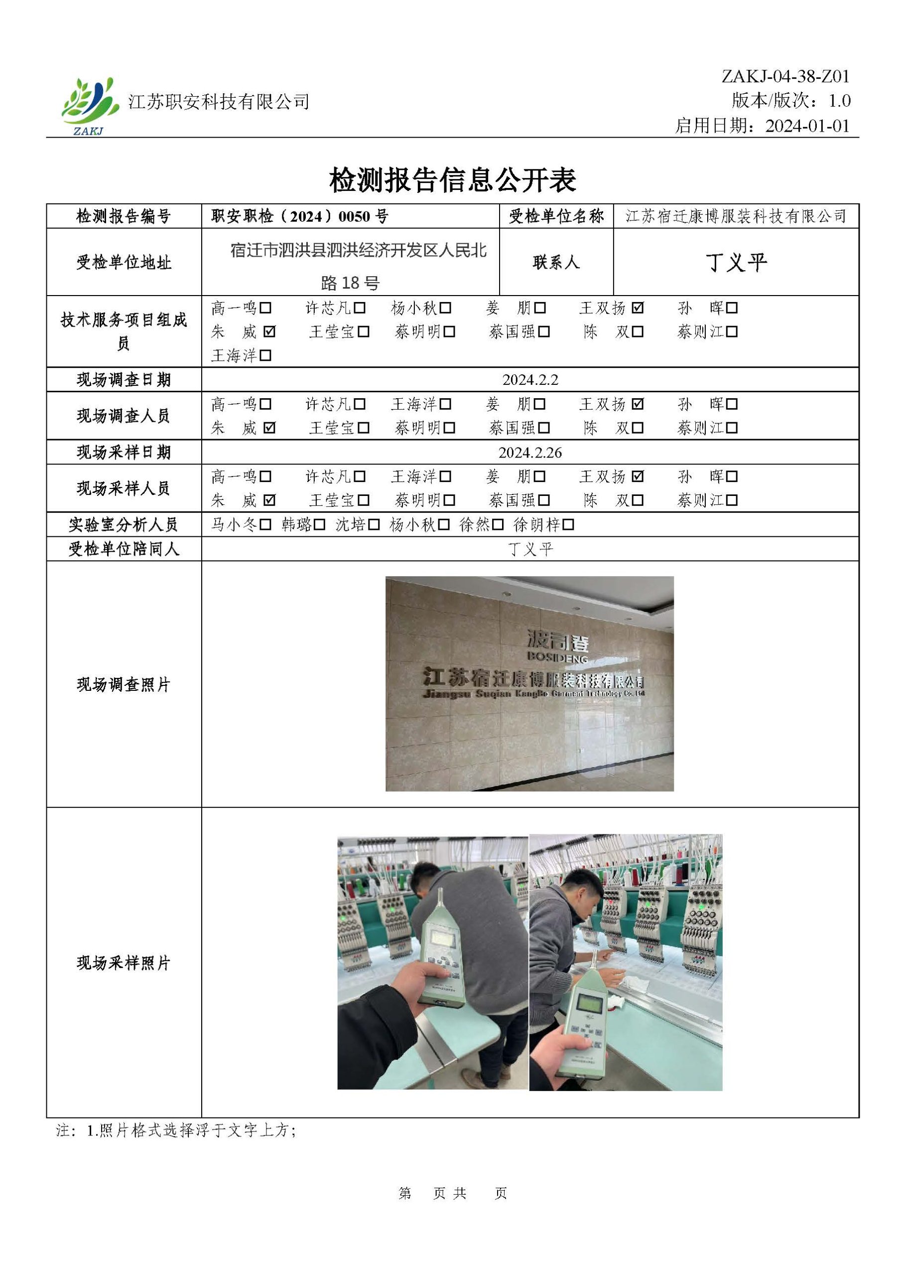 檢測報告公示