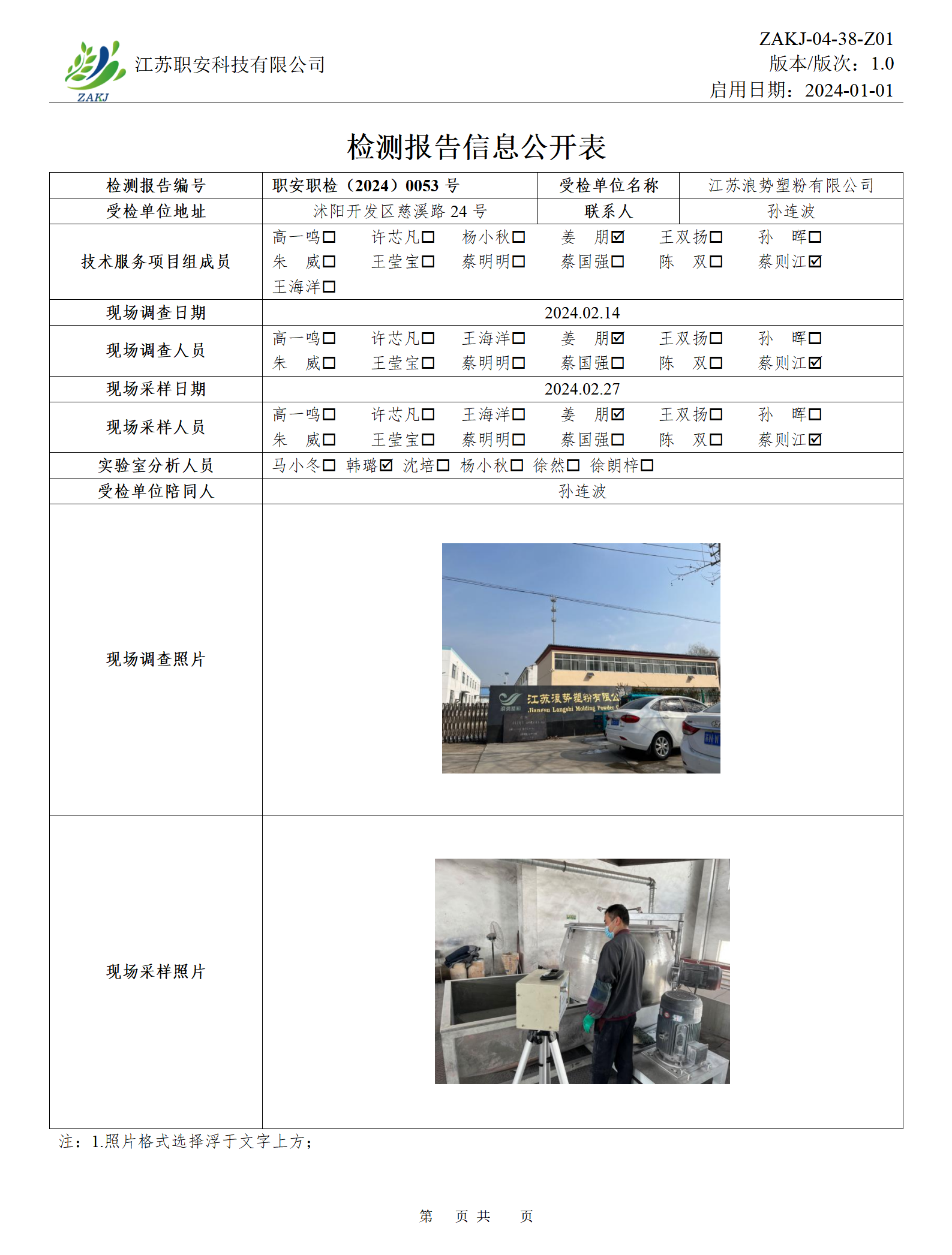 檢測報告公示