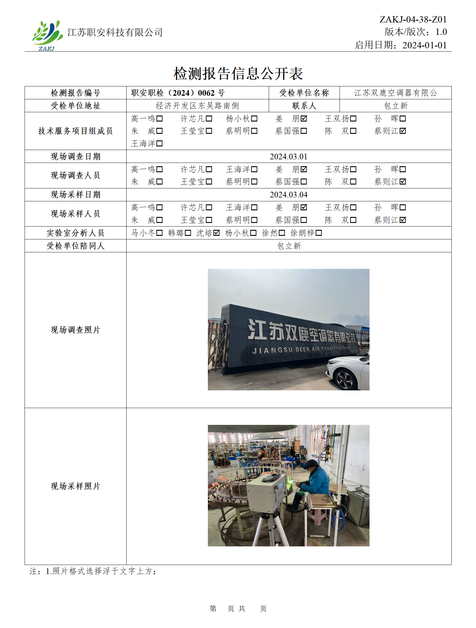 檢測報告公示
