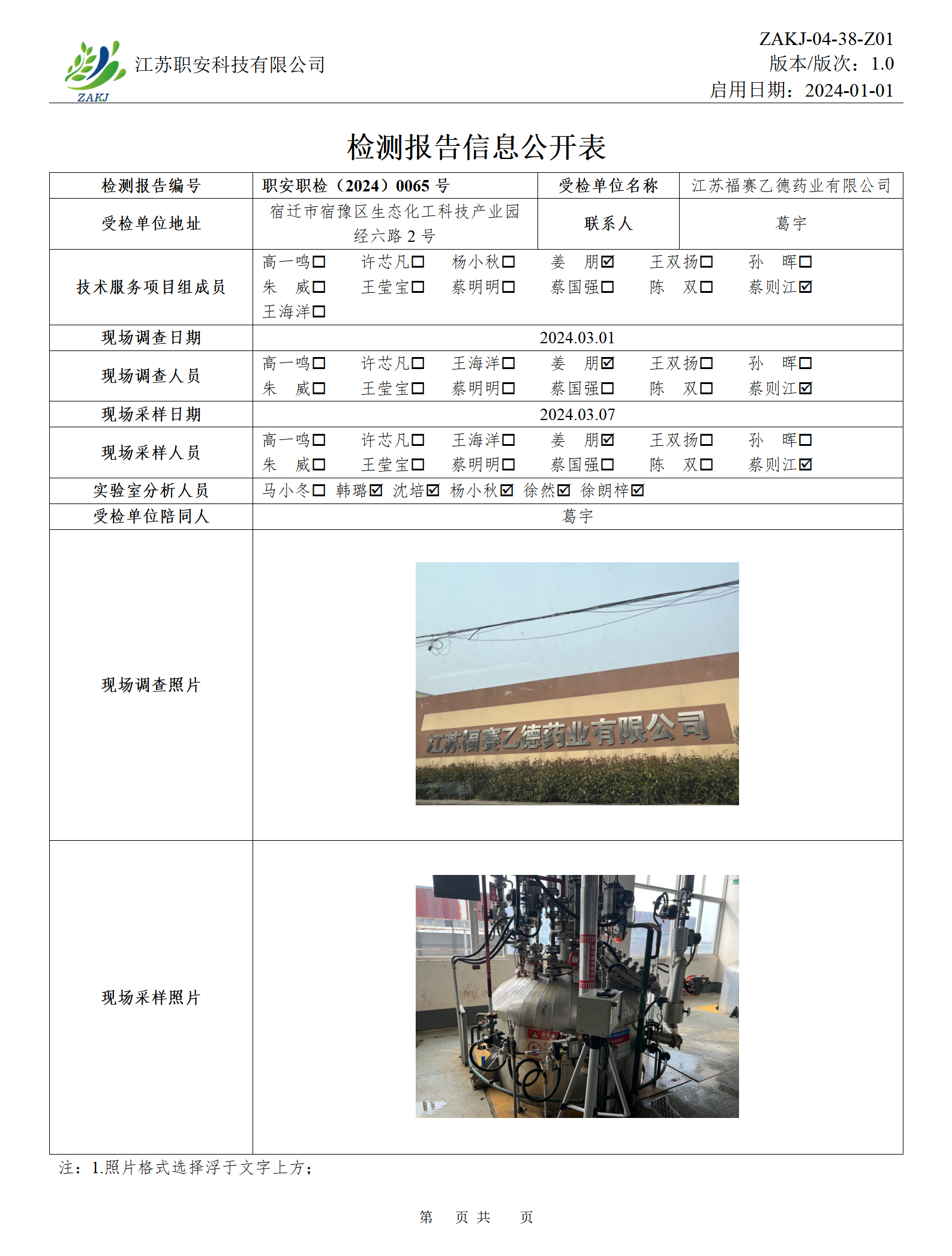 檢測報告公示