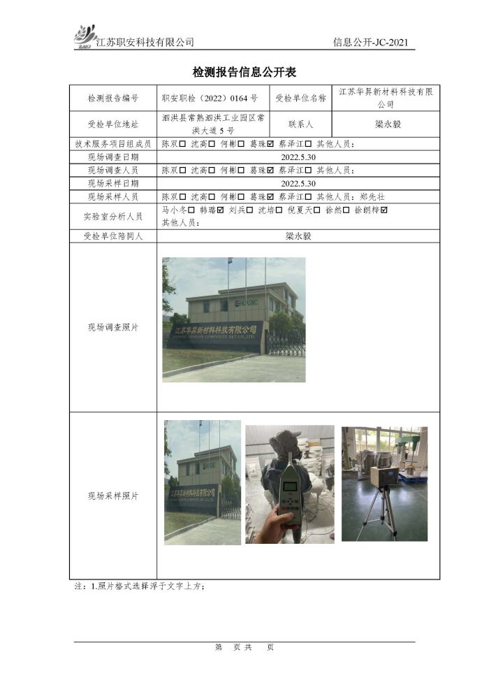 檢測報告公示