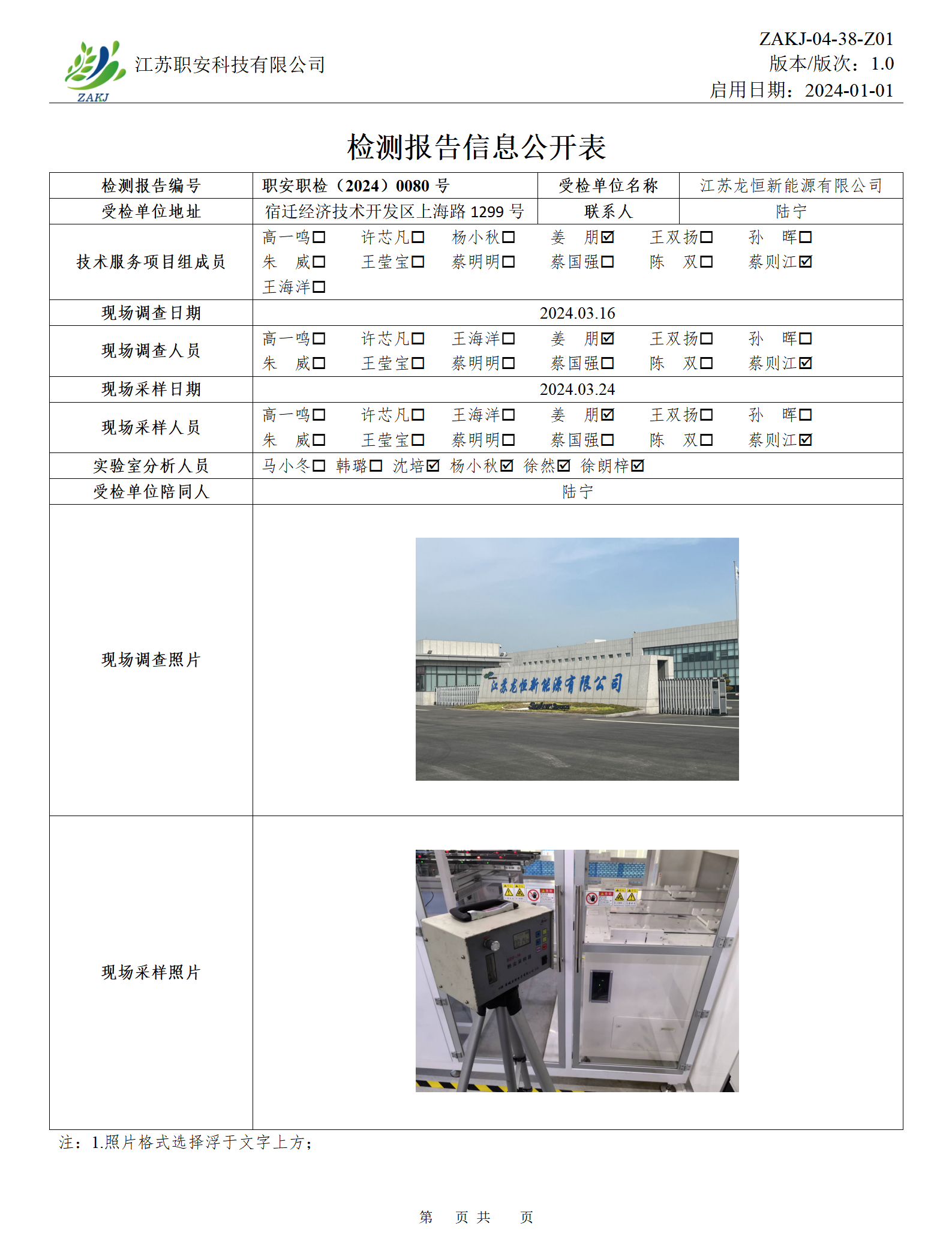 檢測報告公示